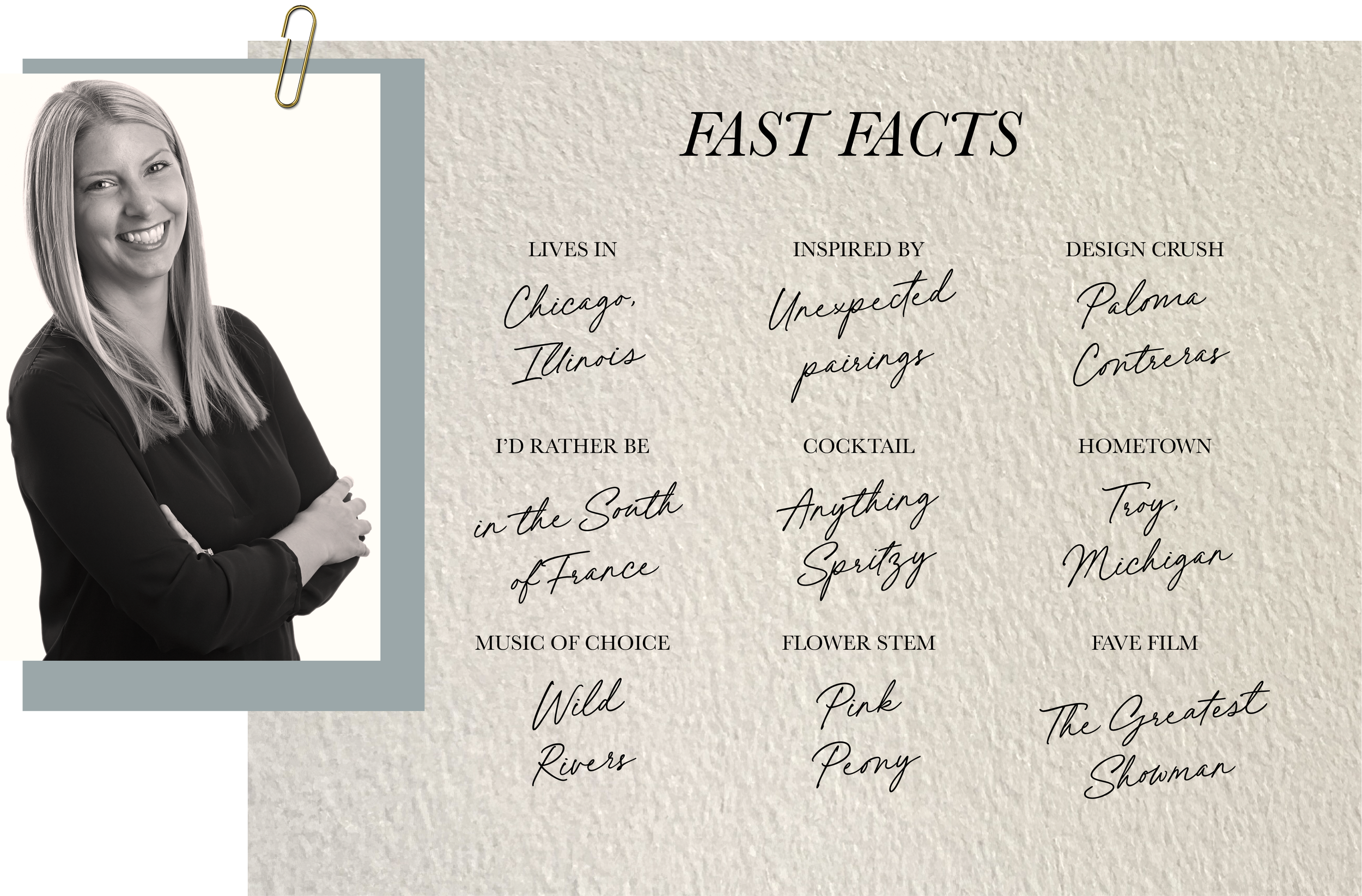 After moving to Chicago to pursue a role in marketing, Katie found her true calling for a career in interior design. She graduated from the Harrington College of Design with a Masters of Art in Interior Design. Katie joined Simeone Deary Design Group to follow her passion for hospitality design and worked on numerous award-winning boutique hotel and restaurant projects during her eight-year tenure at the firm. In 2022, Katie pursued her dream of opening her own interior design business. With 12+ years of experience spanning high-end residential and hospitality design, Katie provides full-service interior design and design consulting to clients in Chicago and beyond.